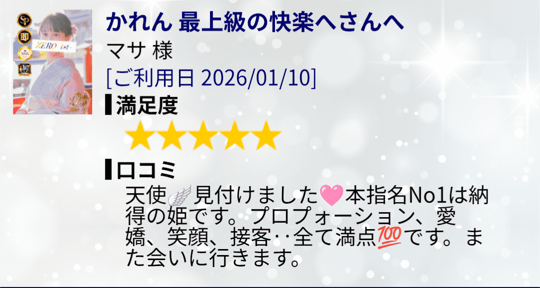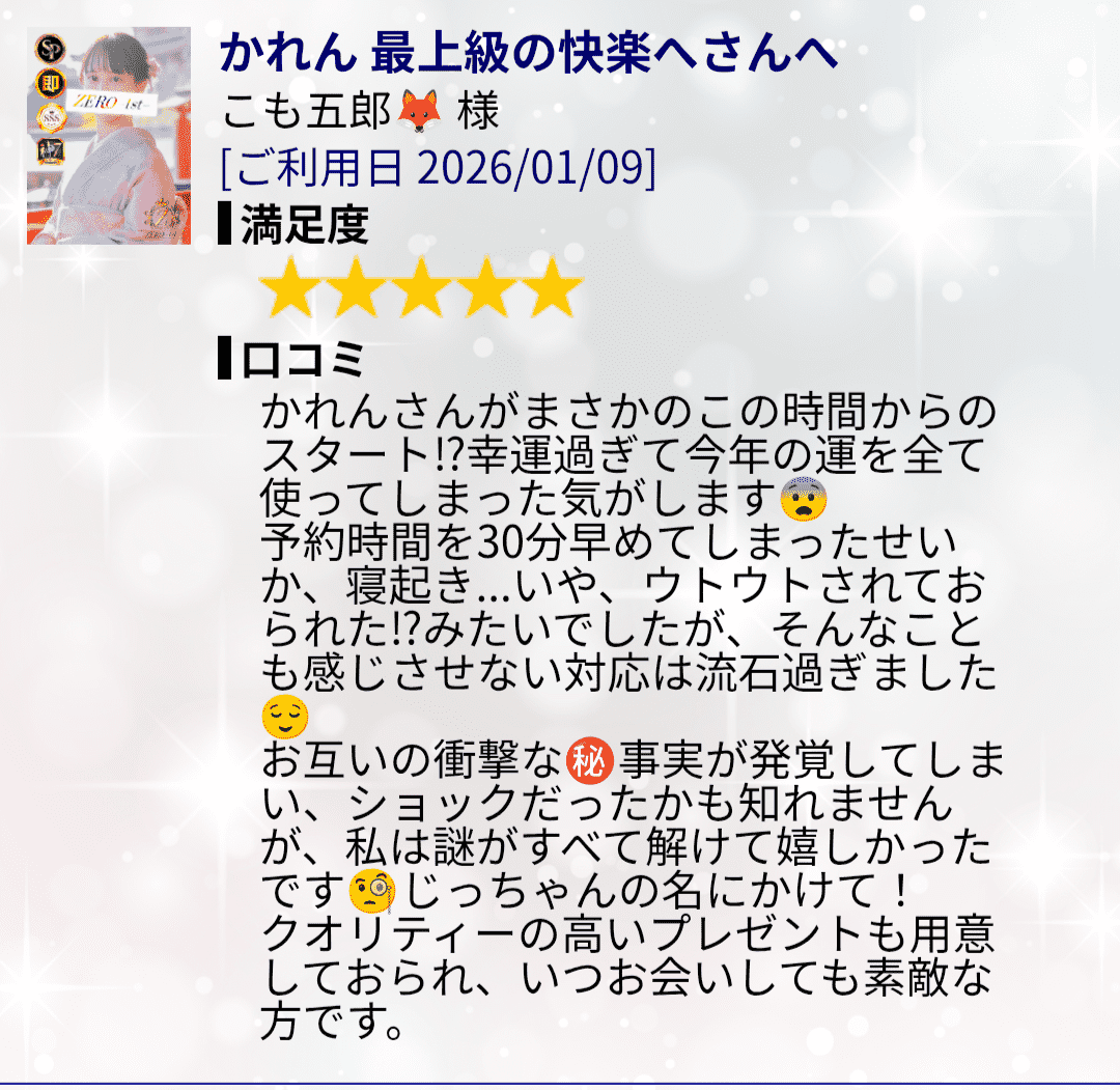 会ったときから天使︎💕🪽かわいい♡って褒め言葉の連続で、とってもとっても嬉しかったよ〜☺️しかもクチコミでも褒め言葉がたくさんで嬉しい(*´ ˘ `*)♡エヘヘ