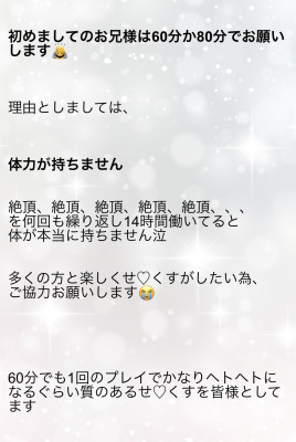 風俗嬢と言う仕事を少しでも長く続けるためにお兄様と楽しい時間を過ごすためにご協力お願い致します