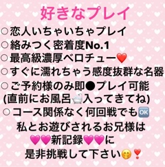 ( ※前日まで姫予約限定80分SPコースから私物の玩具使い放題と120分SPコースから本格的オイルマッサージと整体可能です )